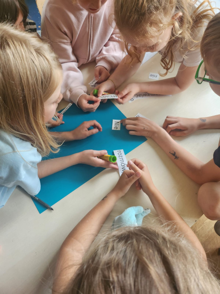 W świetlicy szkolnej realizujemy cykl spotkań pt. Nazywam, rozpoznaje akceptuję emocje. Na jednych z pierwszych zajęć dzieci poznały bliżej emocje, które towarzyszą nim na codzień. Dowiedziały się ja rozpoznawać te emocje a także jak na nie reagować. Uczyliśmy się też okazywać poszczególne emocje. Na koniec dzieci wysłuchały krótkiej historyjki o radości i miłości. Poznając bohaterów - rodzinę Waflów dowiedzieli się jak on reagują na te emocje, jak się wtedy czują i zachowują.