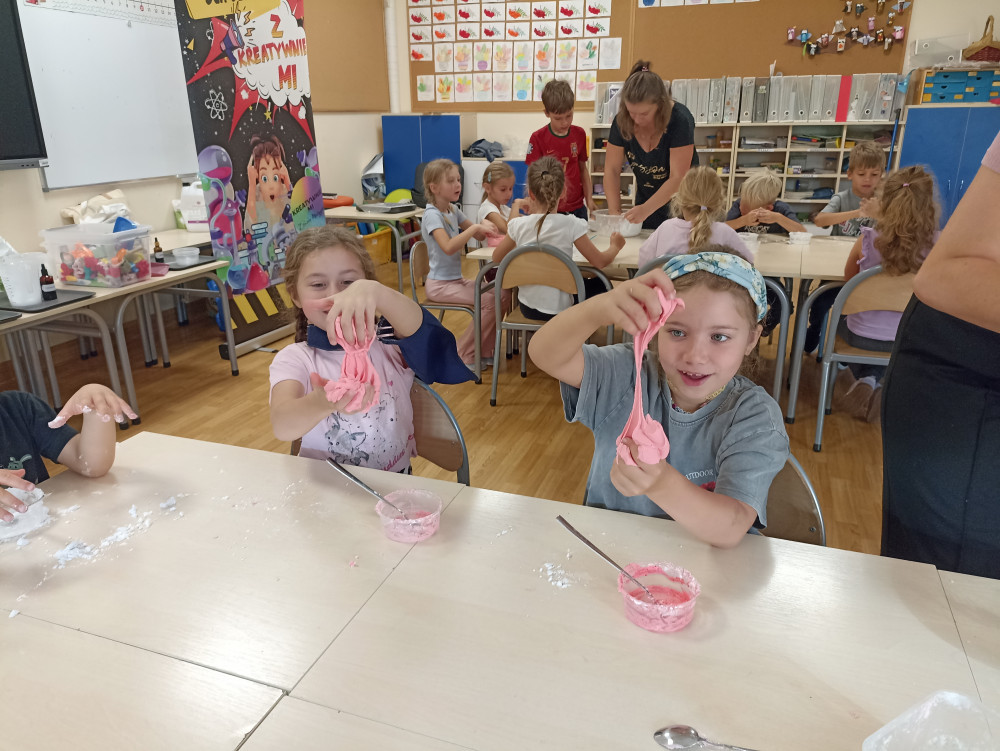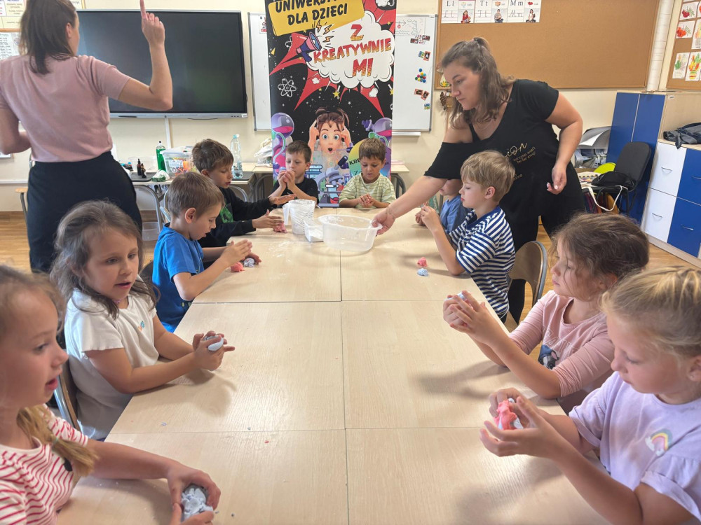 Dzieci samodzielnie tworzyły własną ciastolinę z odżywki do włosów, maki