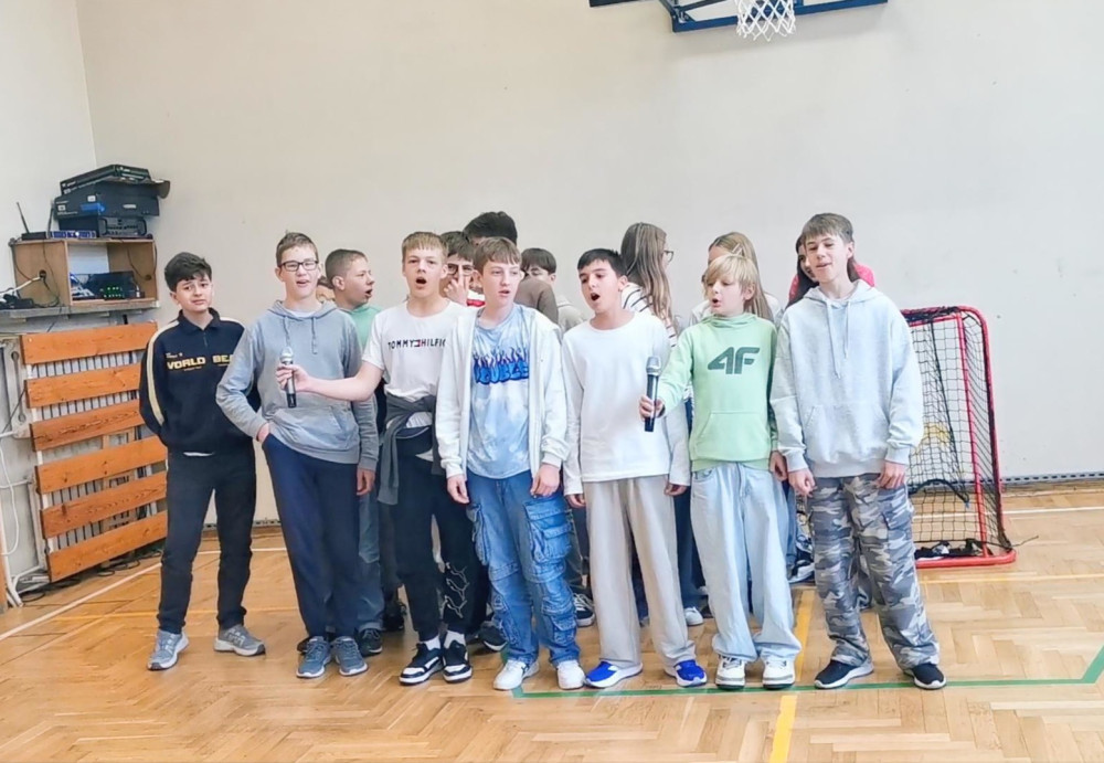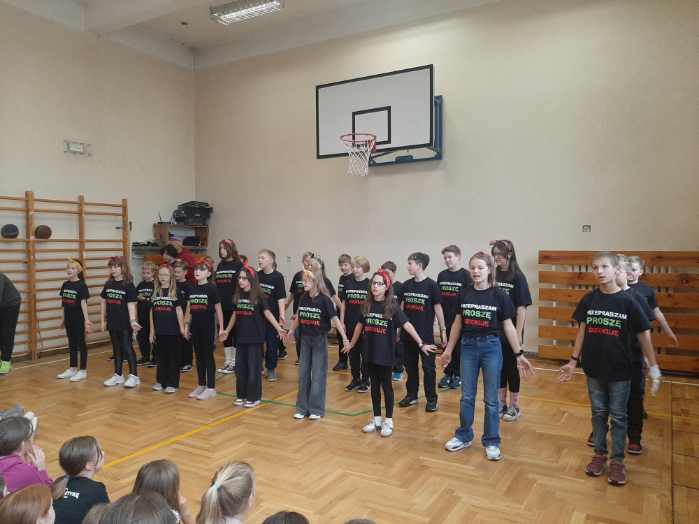 zaprezentowały się klasy IV – VIII , które wspólnym śpiewem wypełniły salę radością