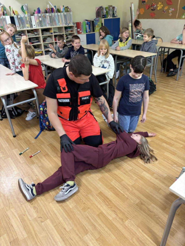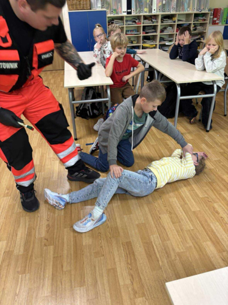 21.10 klasy trzecie wzięły udział w spotkaniu Panem Jankiem, ratownikiem medycznym. Nasz gość z wielkim zaangażowaniem wprowadził dzieci w trudny temat jakim jest pierwsza pomoc. Uczniowie mieli możliwość samodzielnie przeprowadzić resuscytację, dowiedzieli się, jak krok po kroku pomóc osobie poszkodowanej w wypadku.