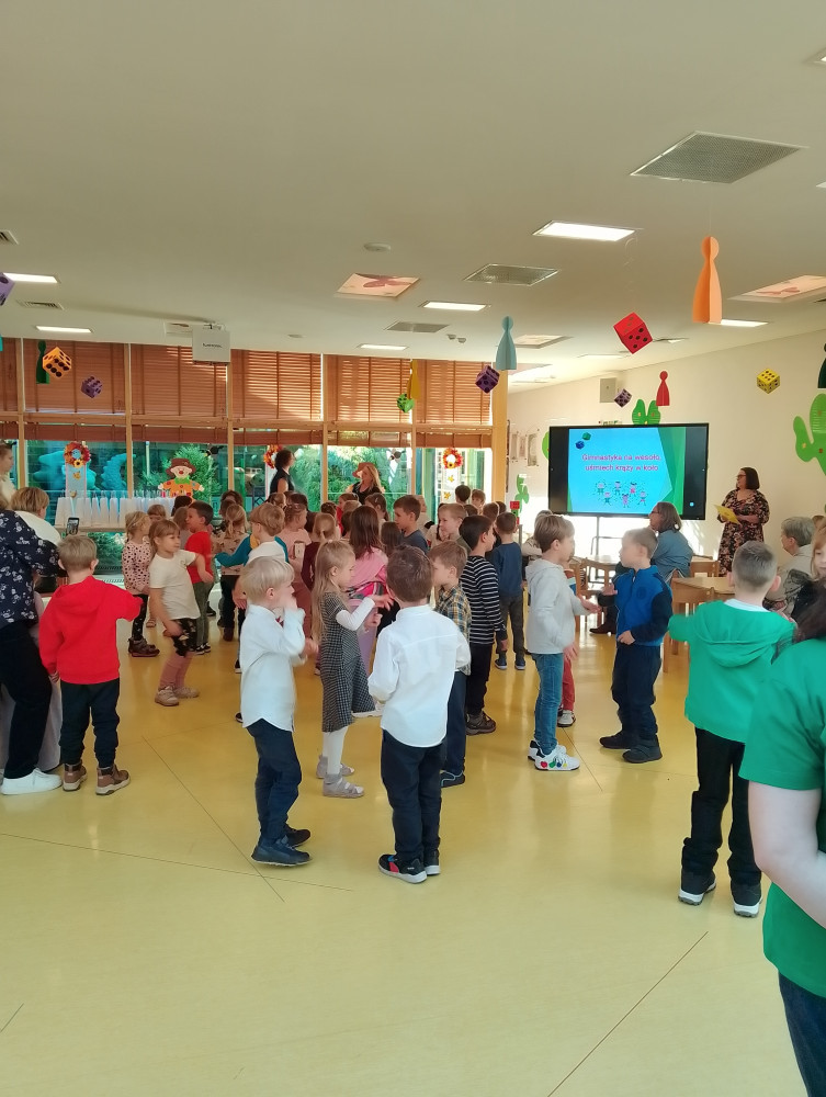 Zerówka powitała jesień. Salę ozdobiły jesienne dekoracje, wykonane przez dzieci. Wybraliśmy się na poszukiwanie skarbów jesieni do parku. Zbieraliśmy tam kasztany, szyszki, żołędzie i liście. A podczas Europejskiego Dnia Sportu Szkolnego zrealizowaliśmy jesienny Ruchowy Plan Lekcji, przygotowany przez Akademię Krokieta i Lamy. Udowodniliśmy, że można być aktywnym i uprawiać sport nawet jeśli jesienna pogoda nie będzie sprzyjała i będziemy musieli zostać w sali. Przed nami jeszcze wiele innych jesiennych przygód!